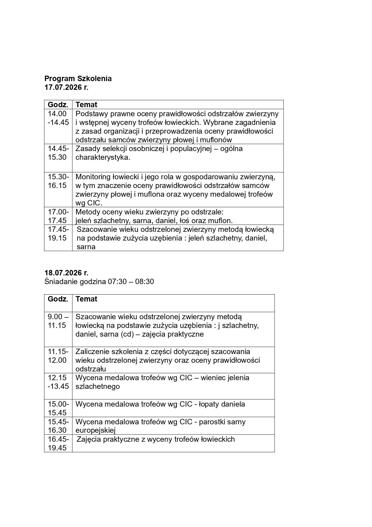 dla Selekcjonerów Polskiego Związku Łowieckiego w roku szkoleniowym